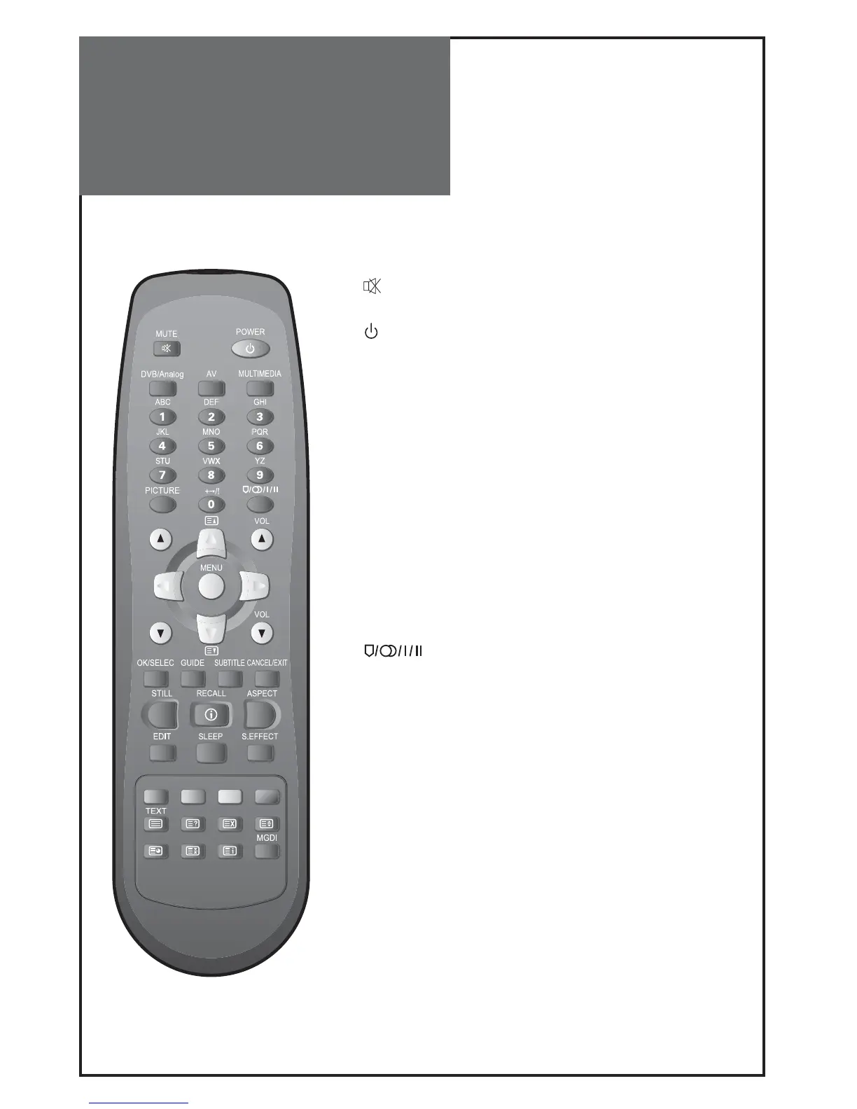 This button is also for uses channel skip and teletext.