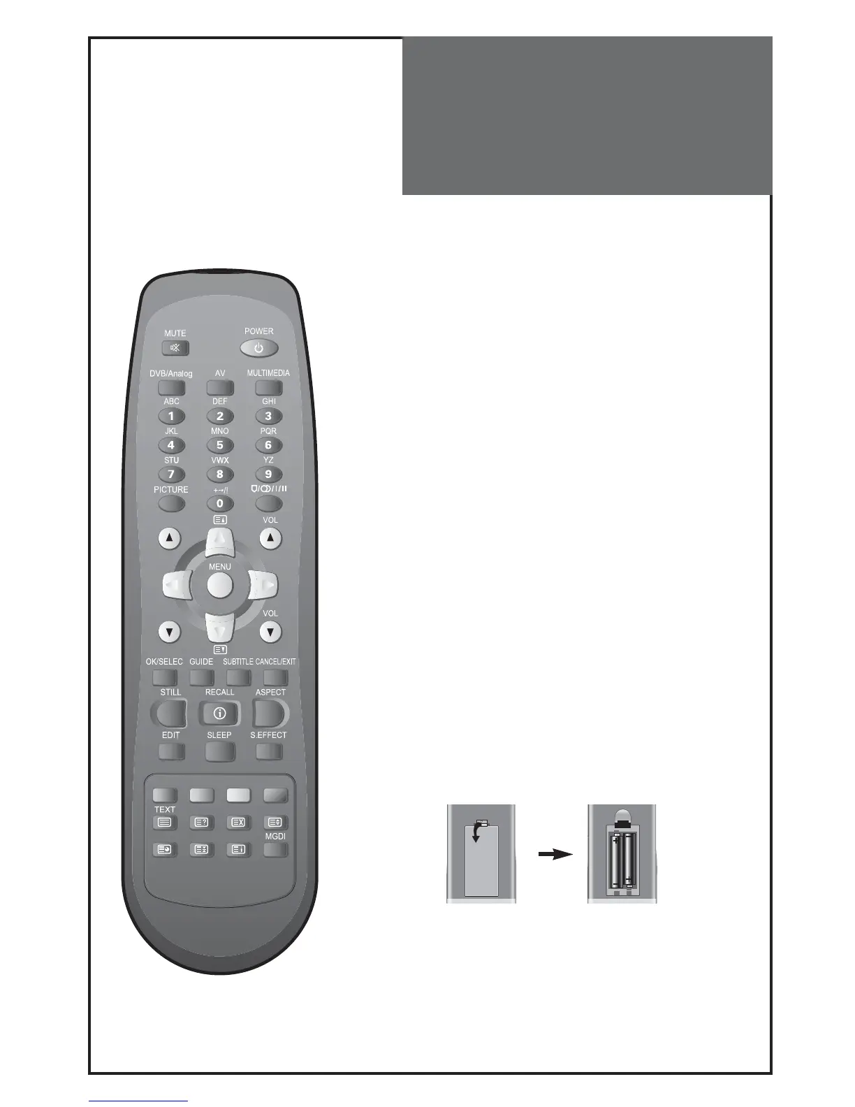 To load the batteries, turn the remote control handset over and open the