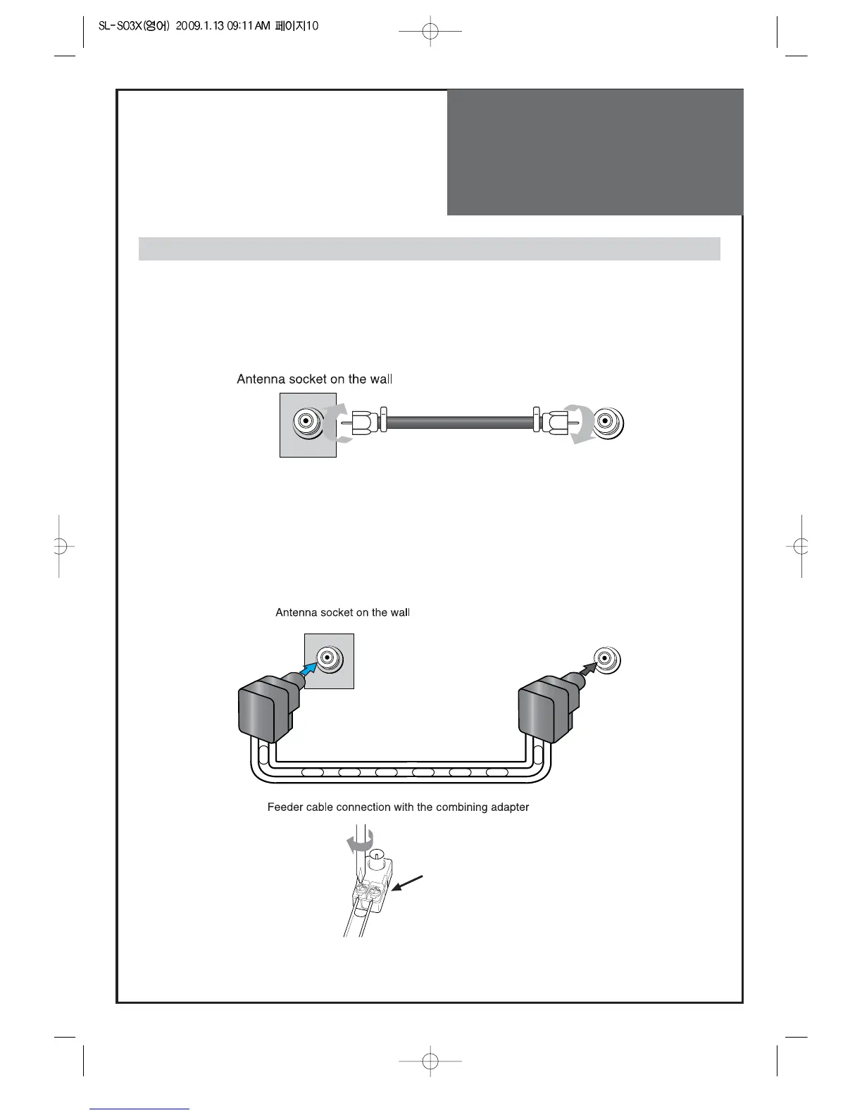 When a coaxial cable is used : Plug the coaxial cable to the antenna socket on the wall.