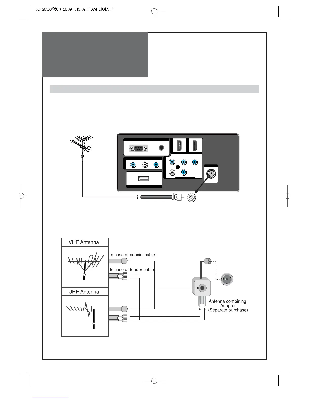 Outdoor Antenna connection-such as VHF or/and UHF-may be necessary for installation at private houses
