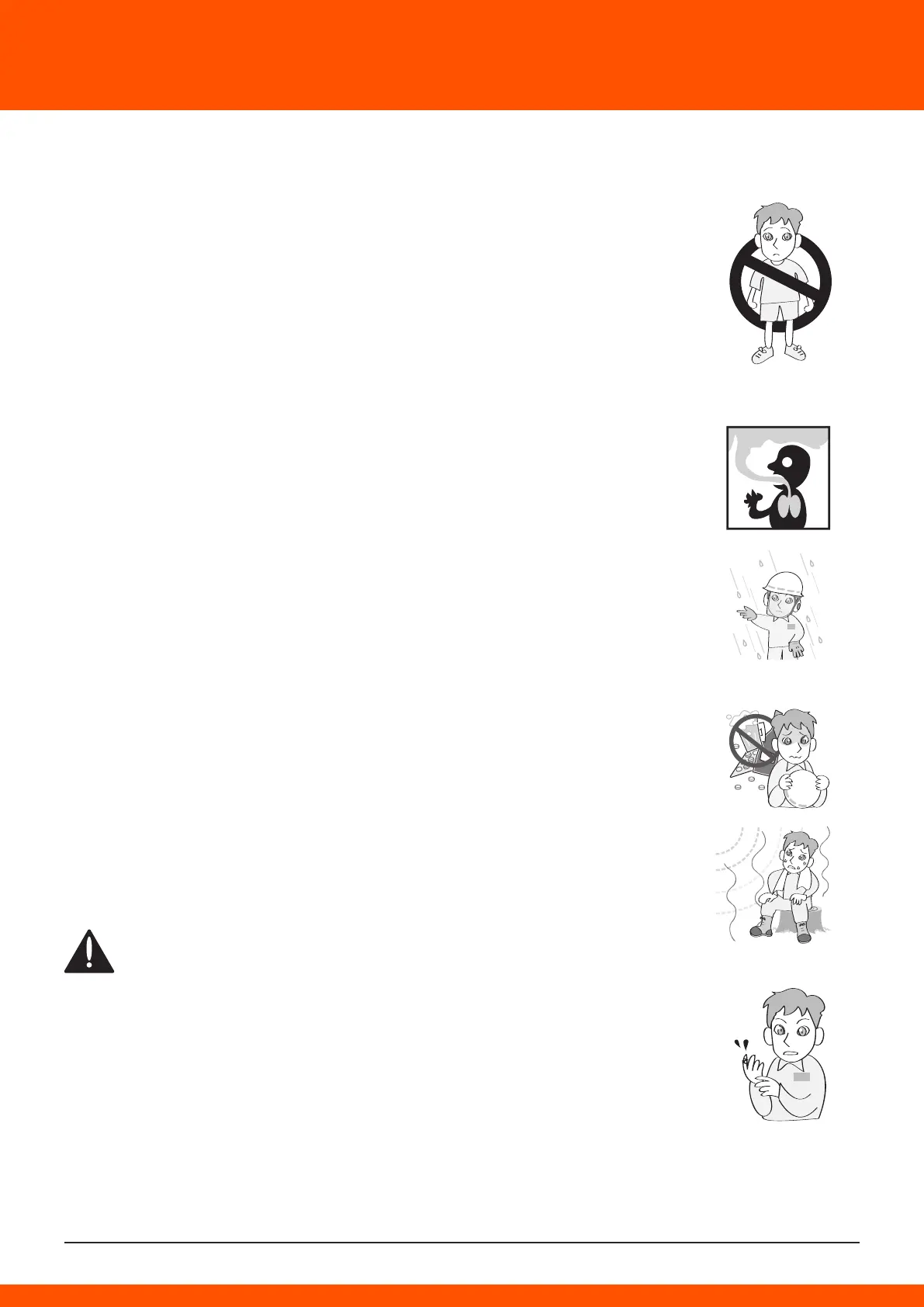 1. Never start the engine inside a closed room or building. Exhaust gases