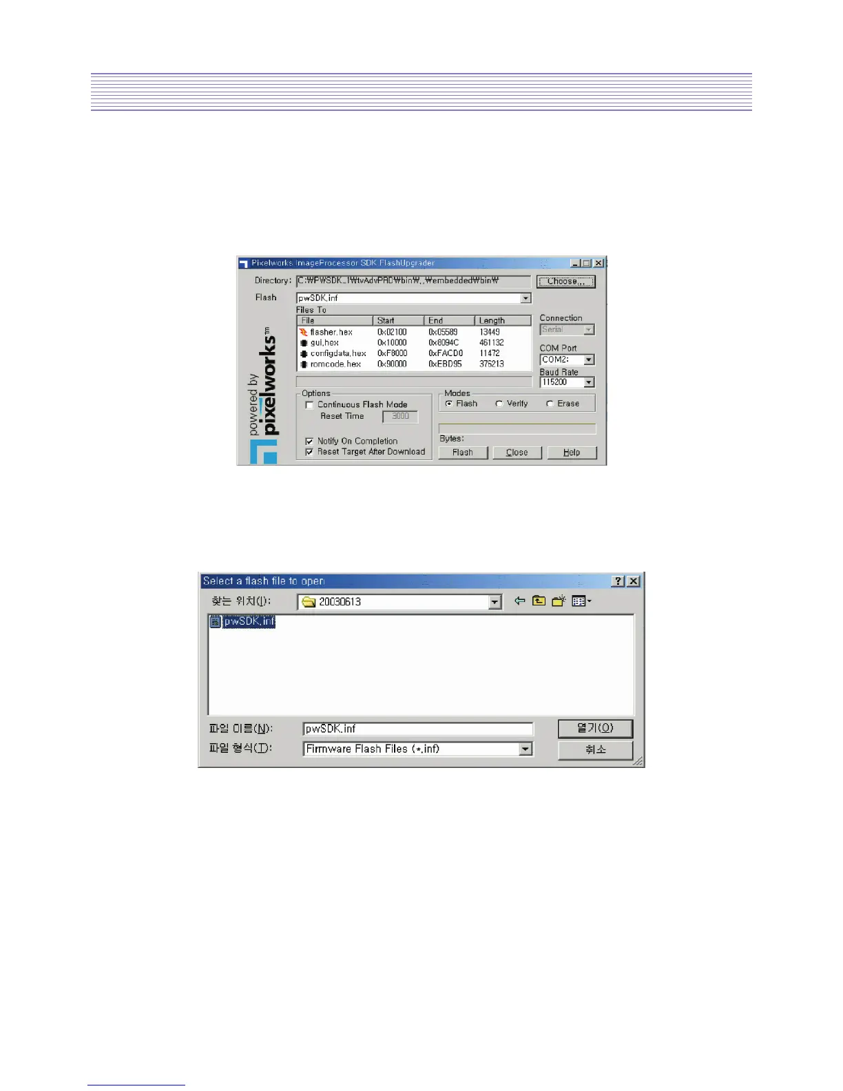 • Run Flashupgrader.exe in the PC to excute the program as shown below.
