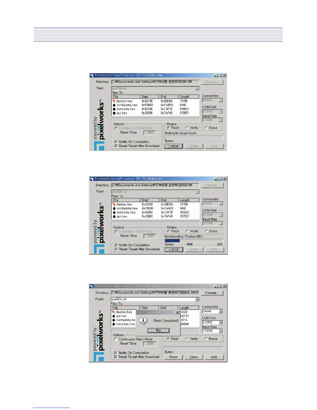 • Turn on the power and then upgrade program will start the download as shown below.