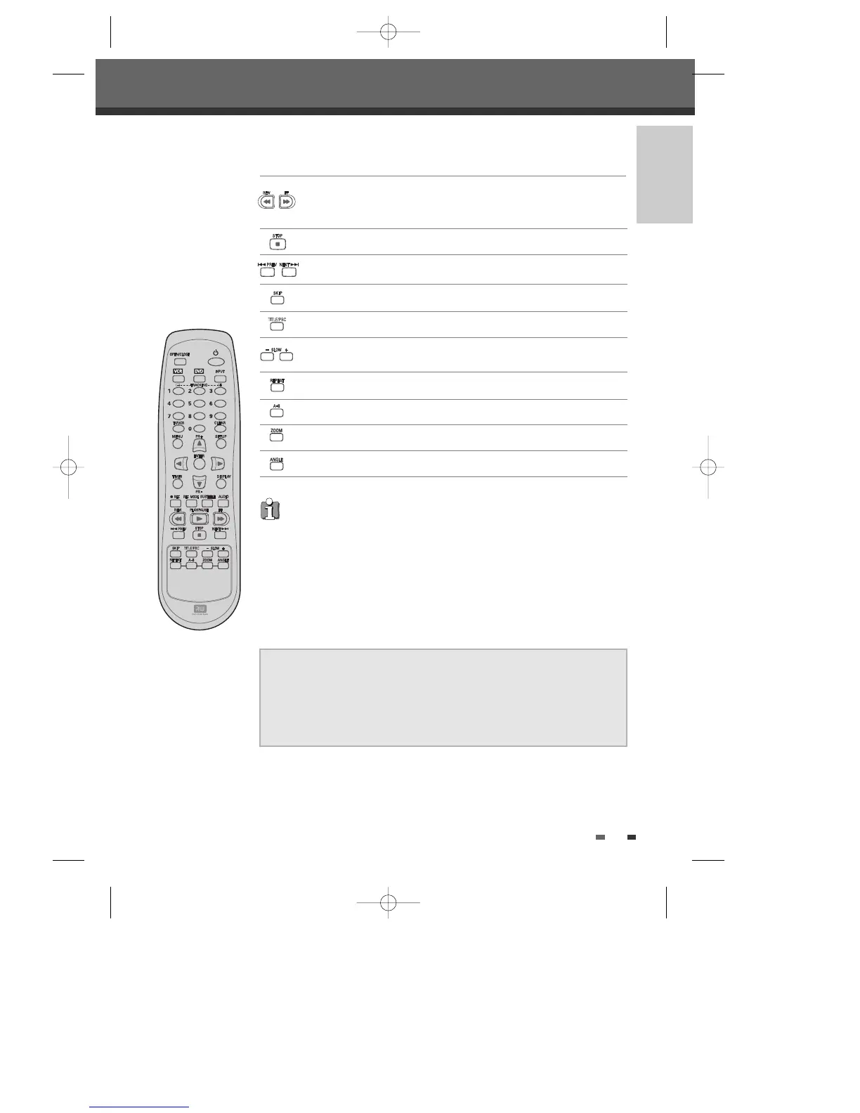 - VCR: Rewinds/advances during Stop mode. Press during Play mode for fast