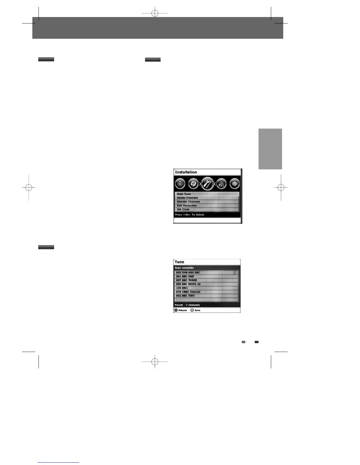 The DVB-T VCR/DVD Recorder Setup menu includes