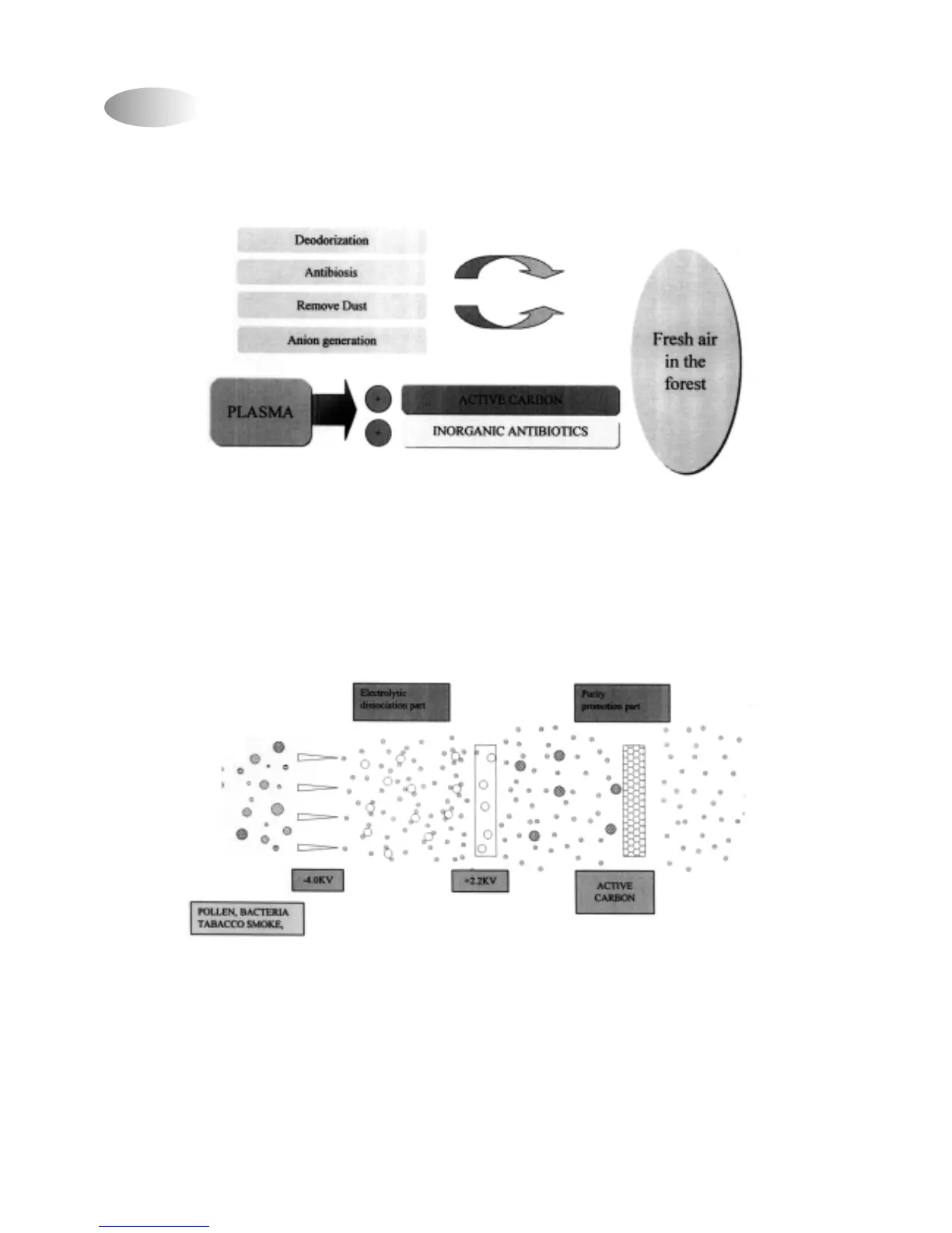 effectively after being collected by ionization process and a separate antibiosis active carbon filter as a deodorization