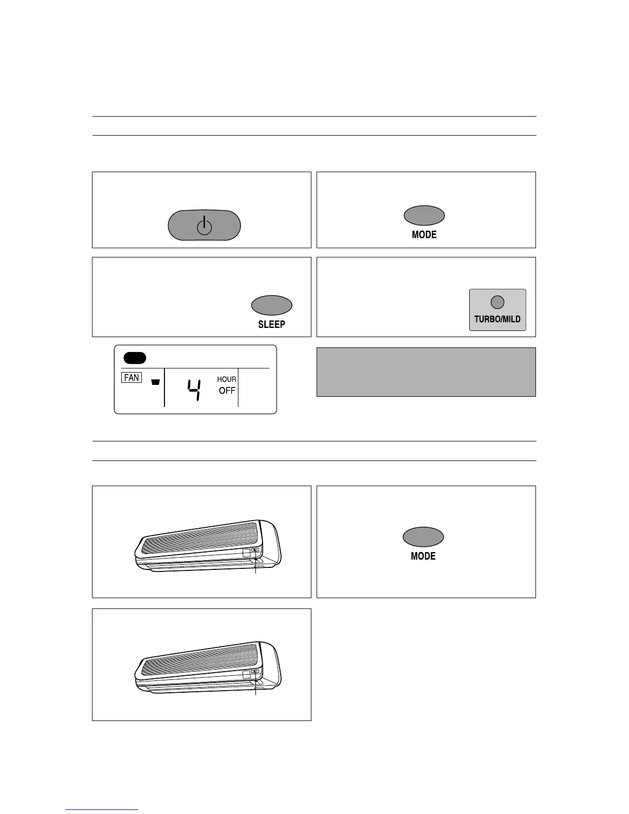 Press the “TURBO/MILD” button to select powerful cool-