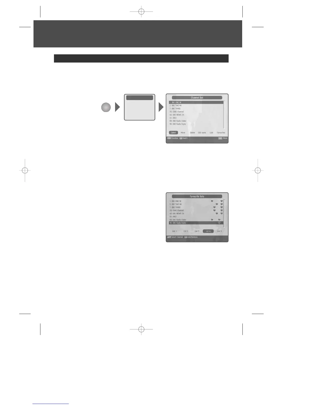 mode on, the channel list shows only the favourite channels.