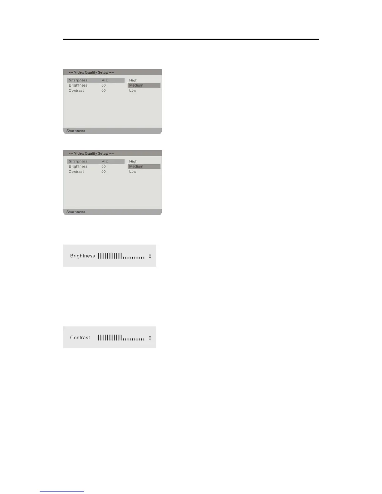 Select Quality, press the ENTER button to enter the menu as below: