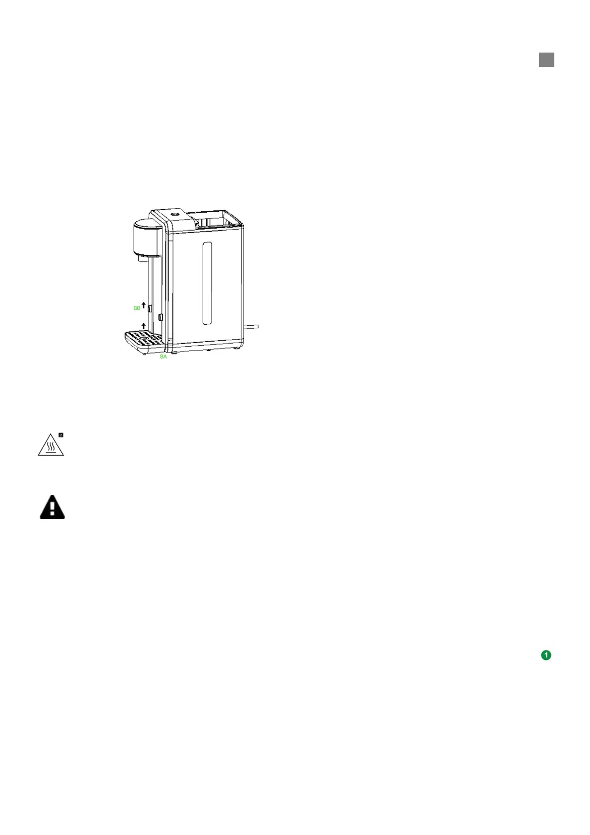 Wanneer de lekbak op de hoogste stand 8B is gemonteerd, is de beschikbare ruimte tussen lekbak en tuit = 10 cm.