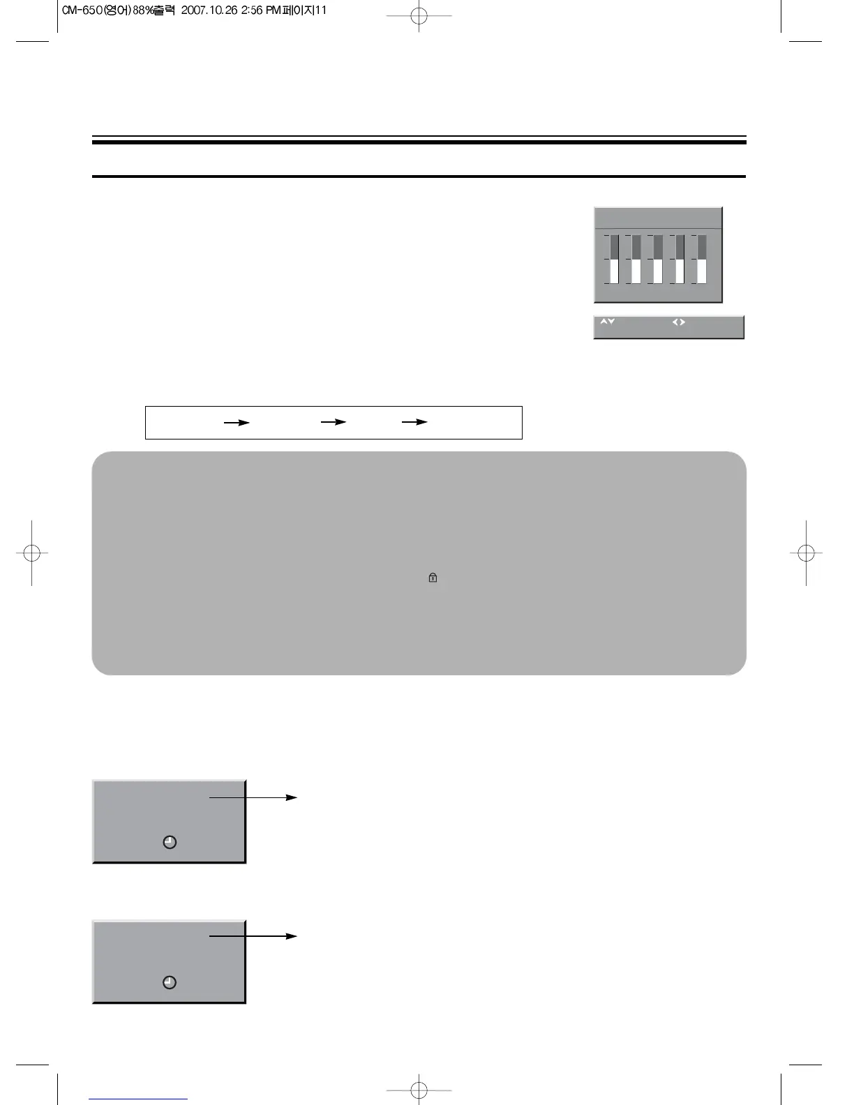 - Adjust the level of each of the 5 equalizer bands, 100Hz, 300Hz, 1000Hz,