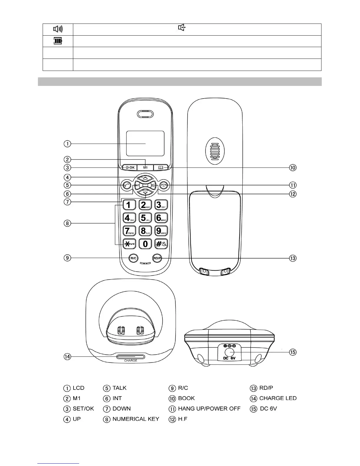 Daewoo DTD 5500 - Handset Keypad and LCD Information; Handset Keypad Layout; Handset LCD Icon Guide