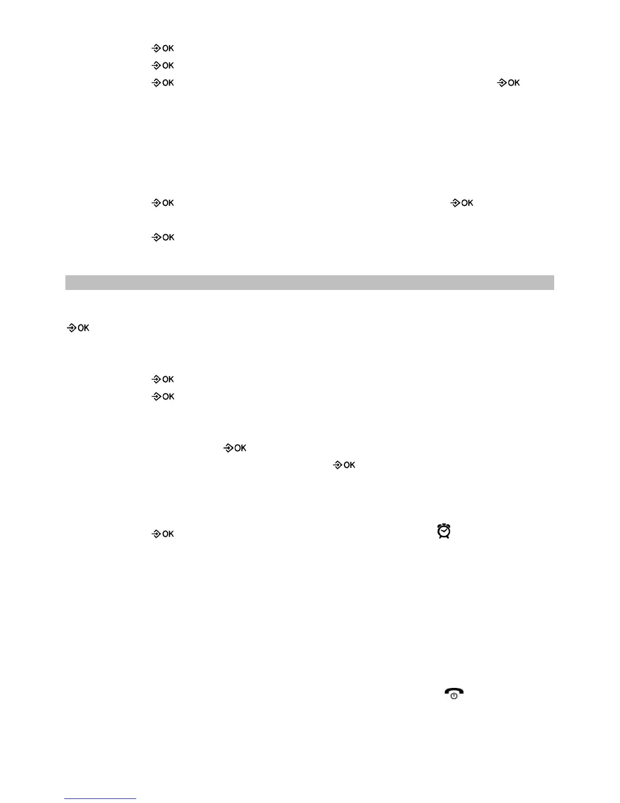 Intermit alarm: During the alarming, you can switch it off by pressing any key of the handset, or