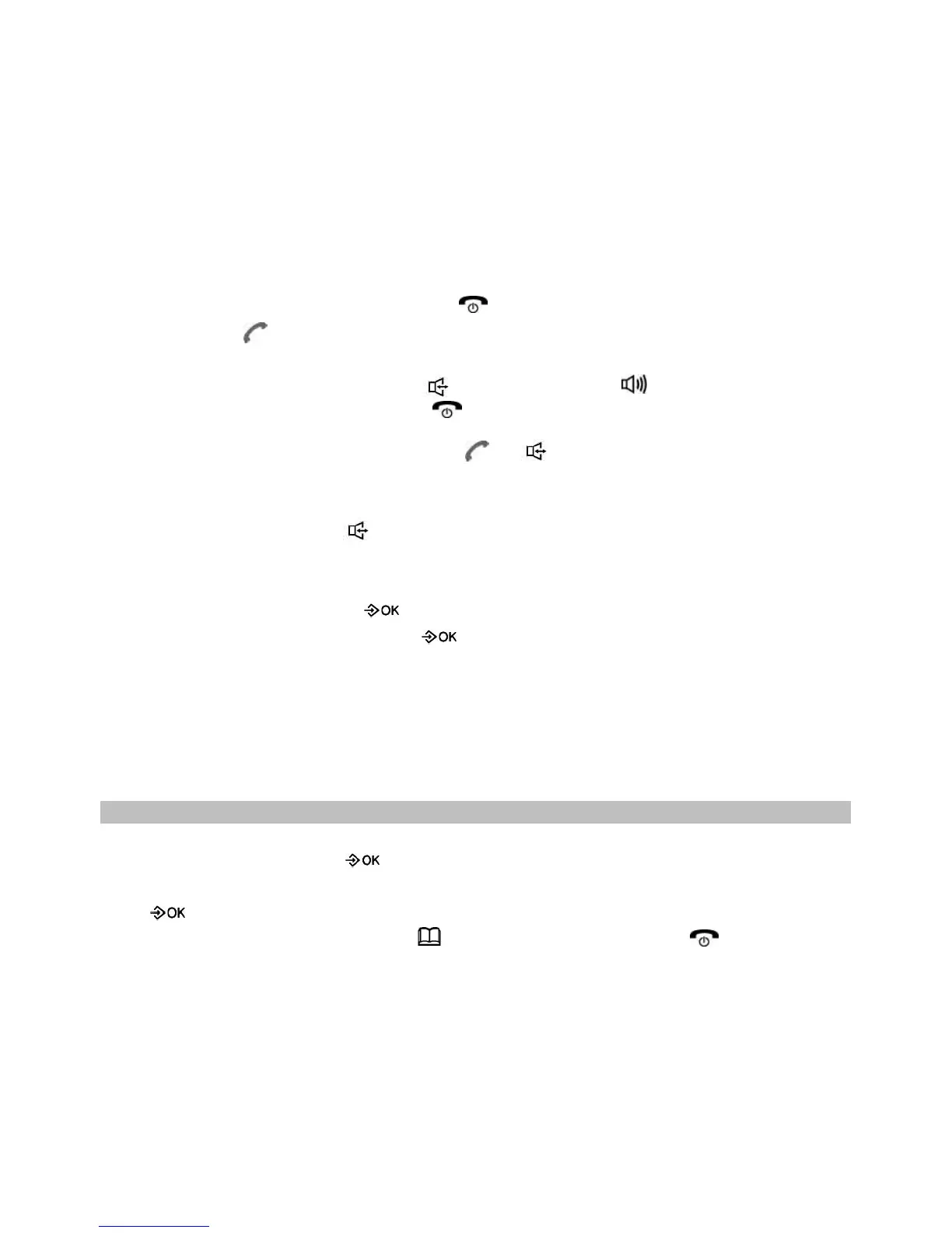 Pegue no fone ou prima a tecla ; depois prima a tecla RD/P para voltar a marcar o último número