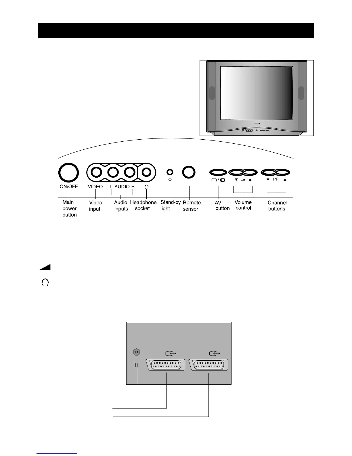 The volume controlVbutton makes the sound louder and the volume controlWbutton makes the sound