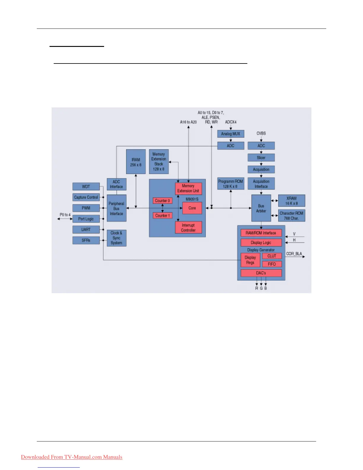 on-screen displays. Internal XRAM consists of 16 Kbytes. Device has an internal ROM of 128