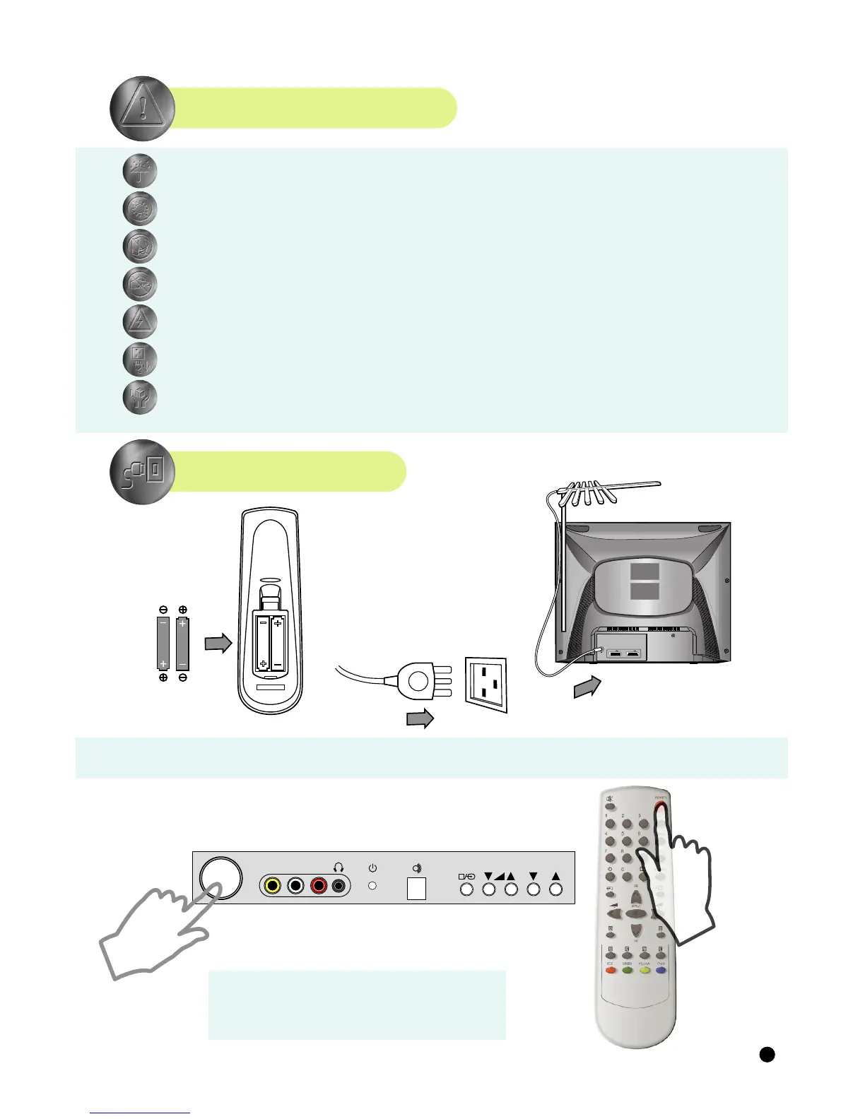 Never install the set in the following places: In a wet basement, bathroom. Do not place any container with liquid on the set.