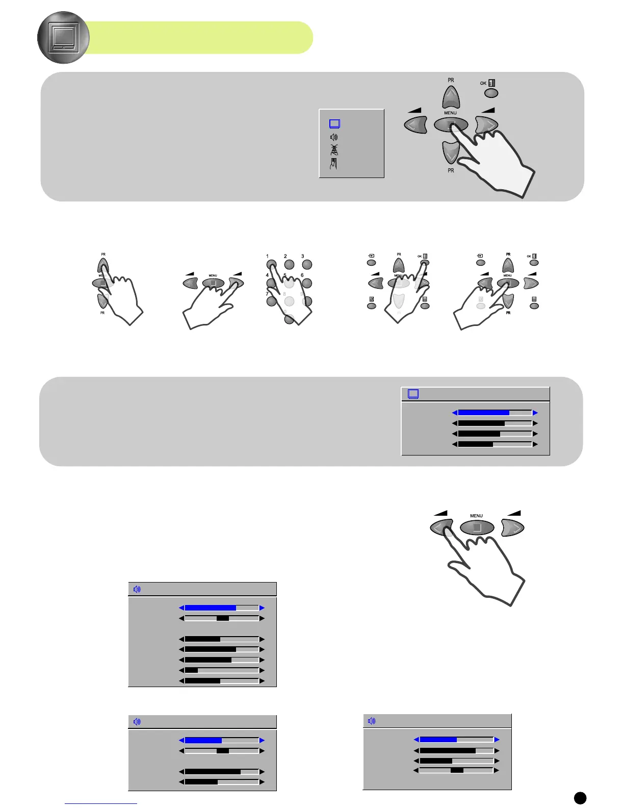 - Select and adjust the level of each function : "brightness", "contrast", "colour", "sharpness".