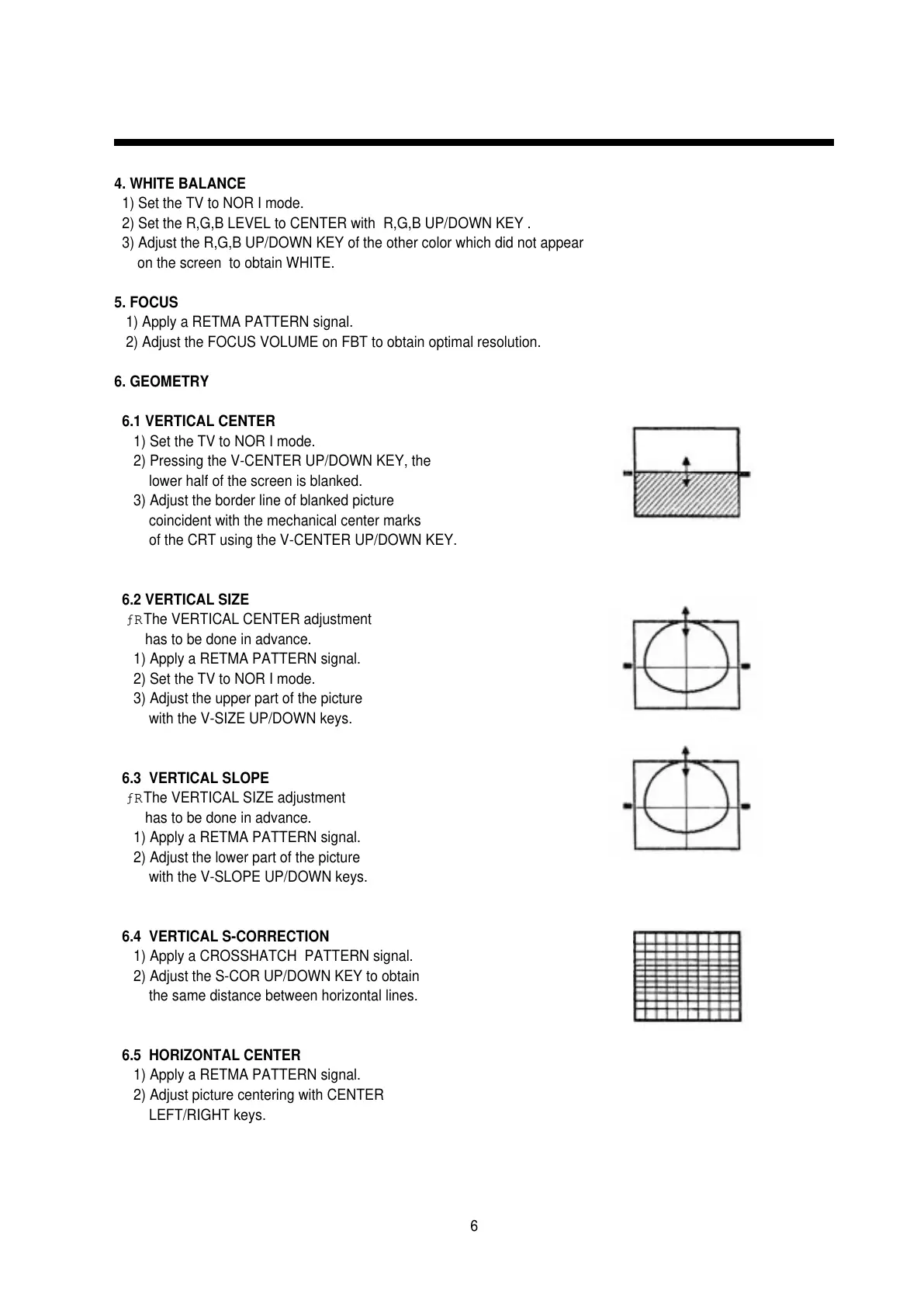 of the CRT using the V-CENTER UP/DOWN KEY.
