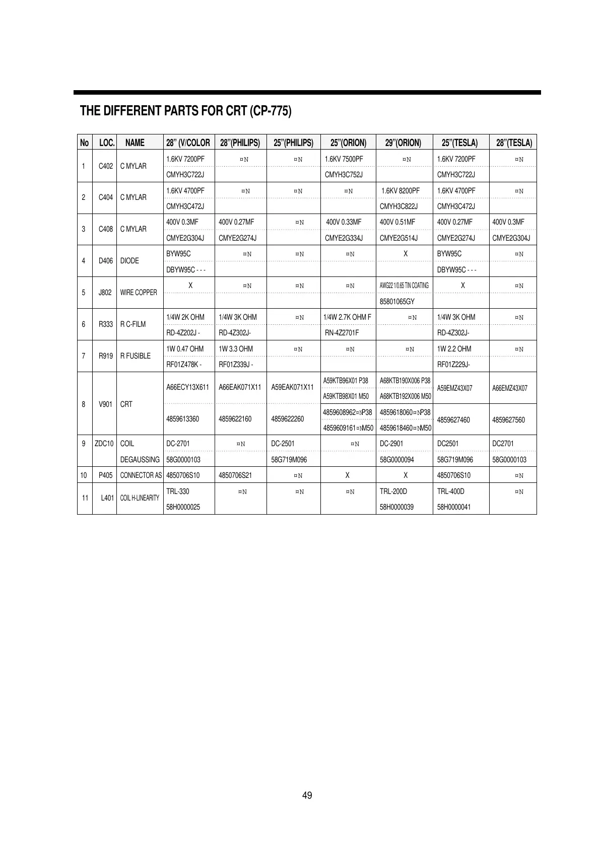 THE DIFFERENT PARTS FOR CRT (CP-775)