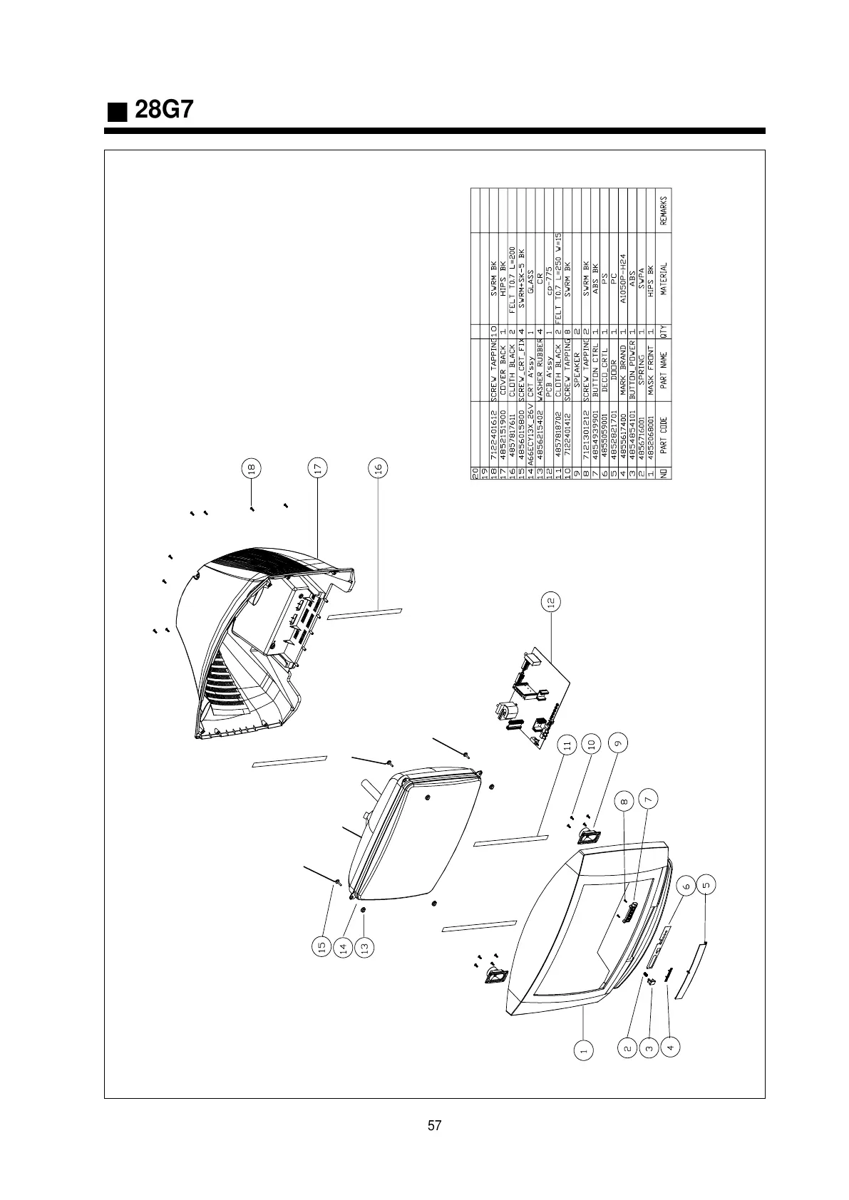 Daewoo DTY-2896 TF - Mechanical Exploded View and Parts List - Model 28 G7