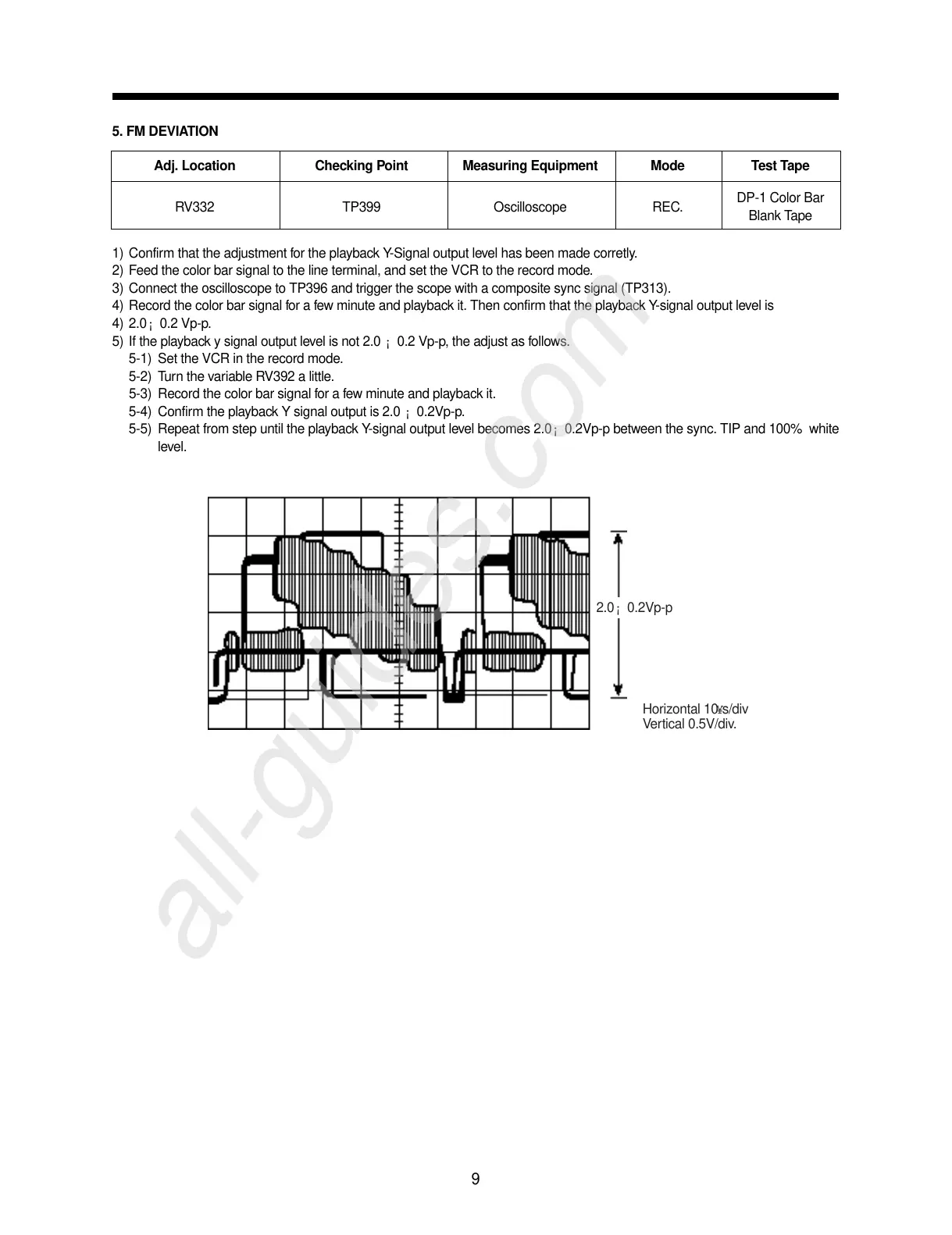 5-5) Repeat from step until the playback Y-signal output level becomes 2.0¡ 0.2Vp-p between the sync. TIP and 100% white