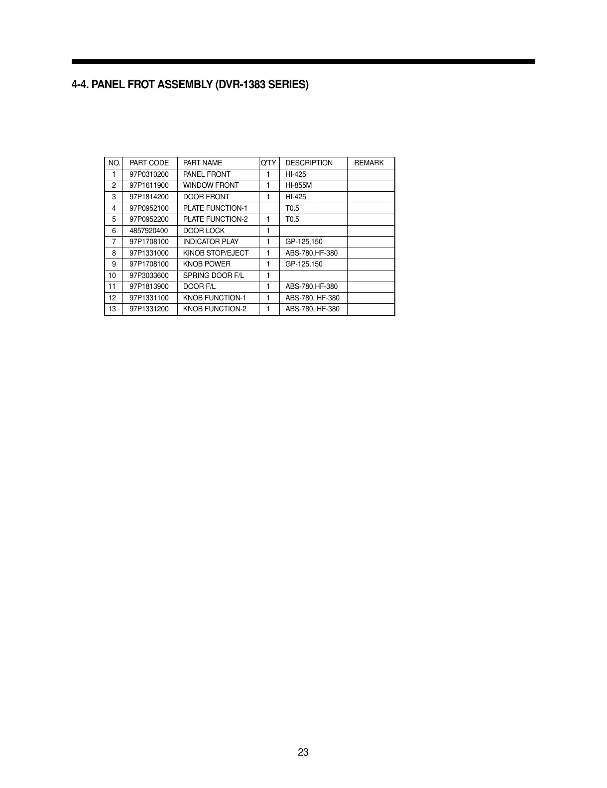 4-4. PANEL FROT ASSEMBLY (DVR-1383 SERIES)
