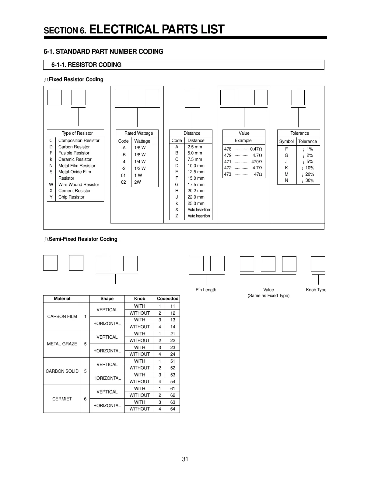 Daewoo DVR-1181D - SECTION 6. ELECTRICAL PARTS LIST; 6-1. STANDARD PART NUMBER CODING