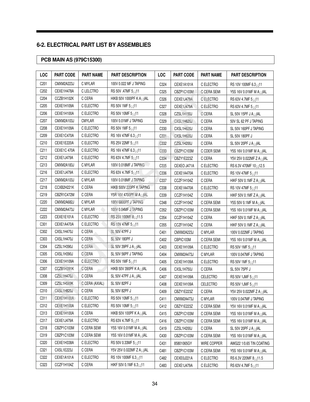 6-2. ELECTRICAL PART LIST BY ASSEMBLIES
