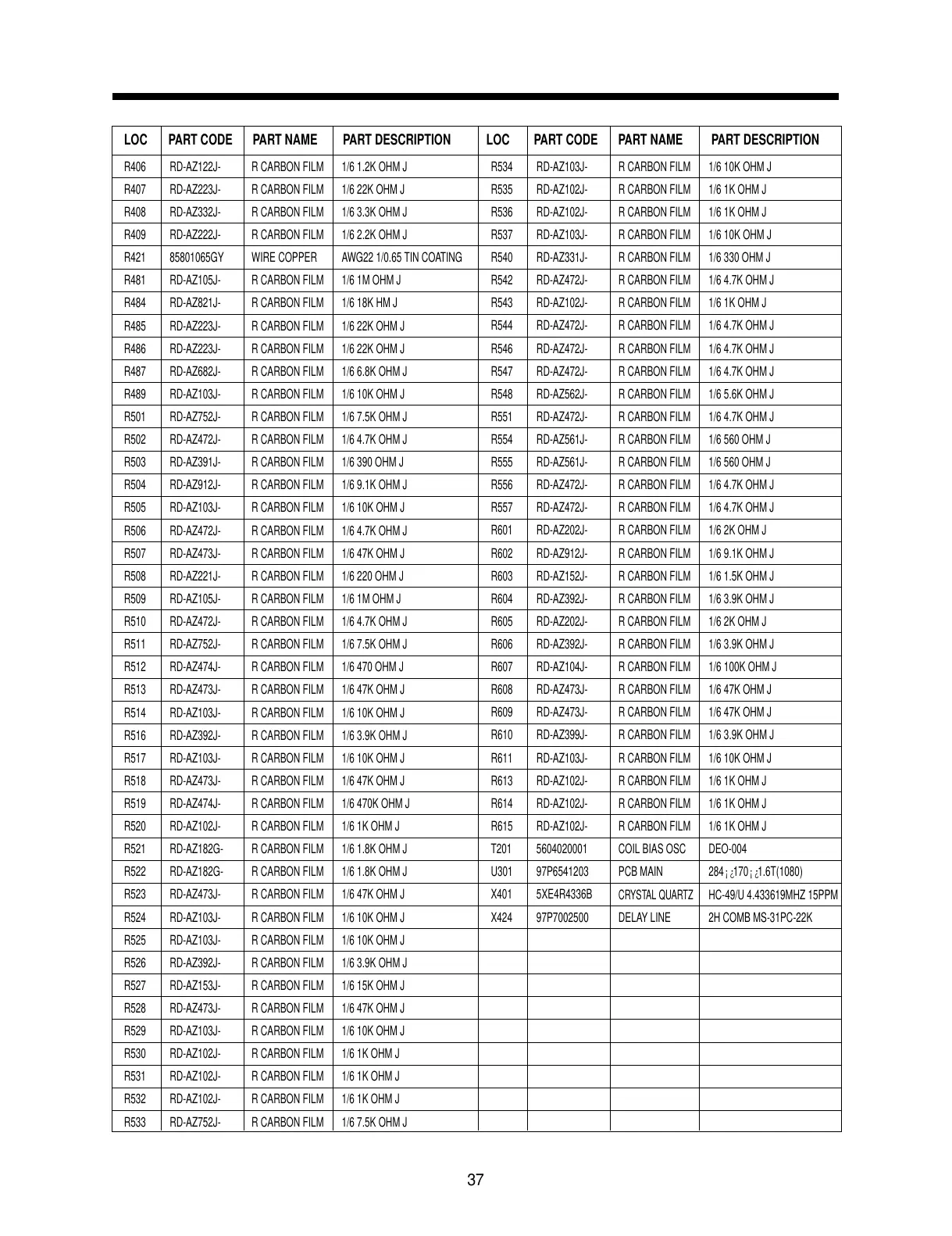 LOC PART CODE PART NAME PART DESCRIPTION LOC PART CODE PART NAME PART DESCRIPTION