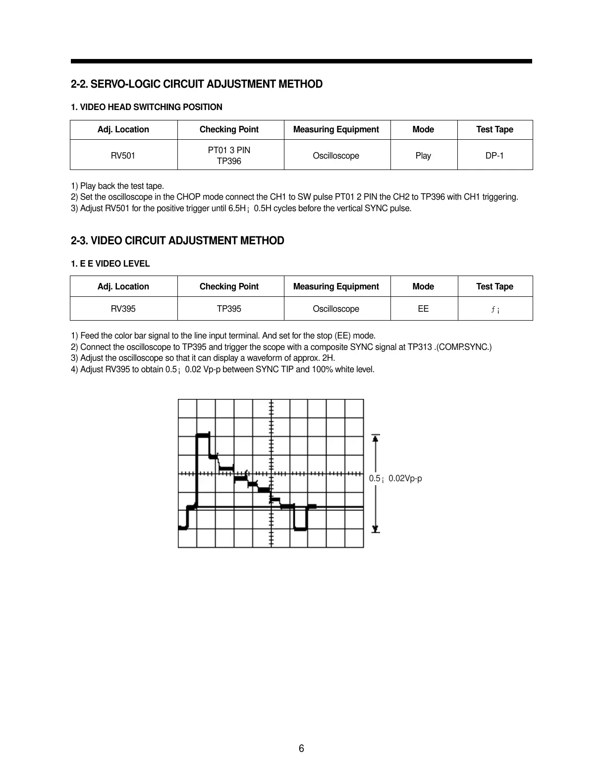 4) Adjust RV395 to obtain 0.5¡ 0.02 Vp-p between SYNC TIP and 100% white level.