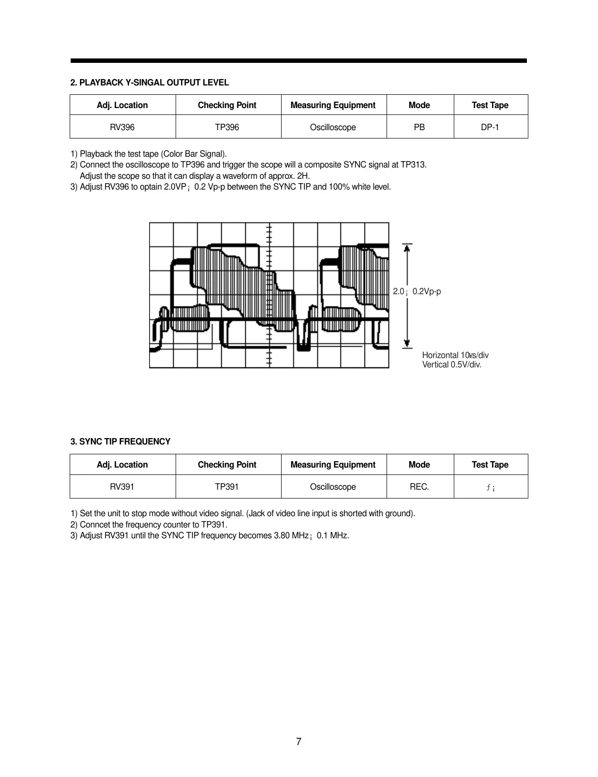 3) Adjust RV396 to optain 2.0VP¡ 0.2 Vp-p between the SYNC TIP and 100% white level.