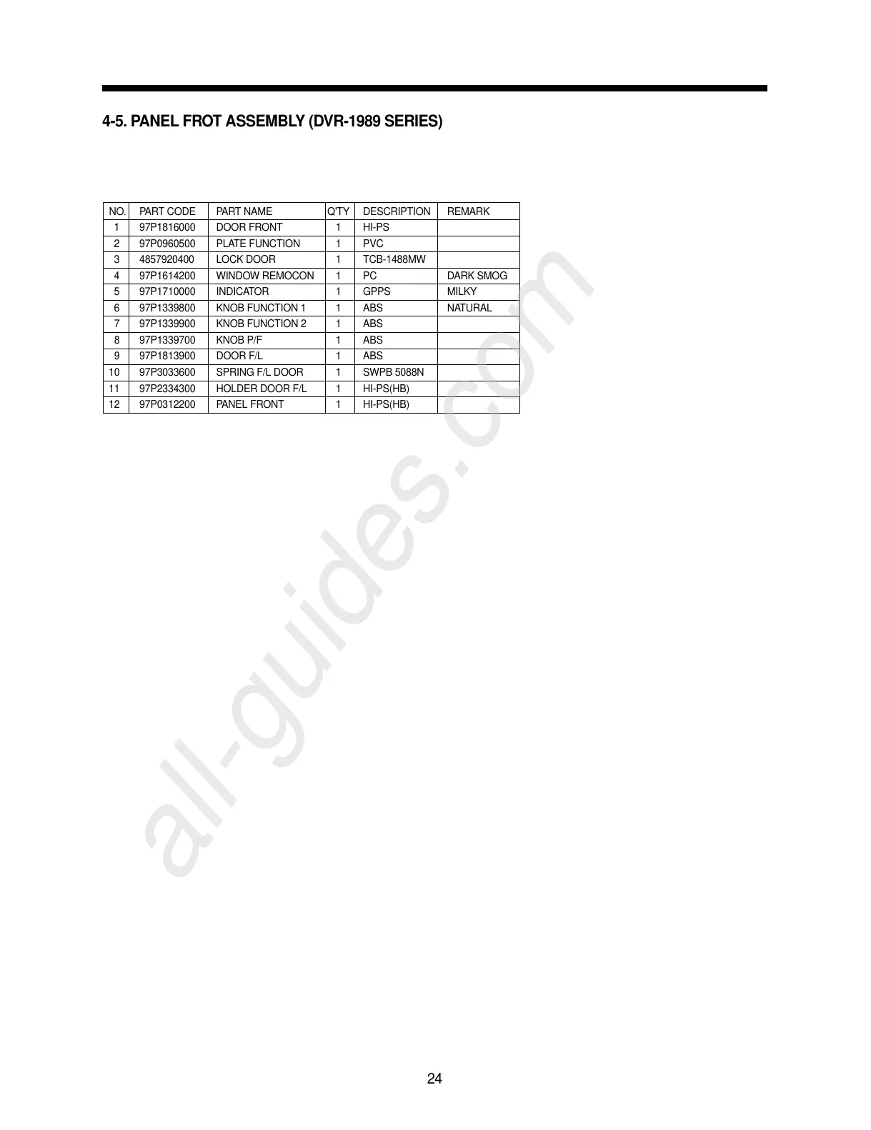4-5. PANEL FROT ASSEMBLY (DVR-1989 SERIES)