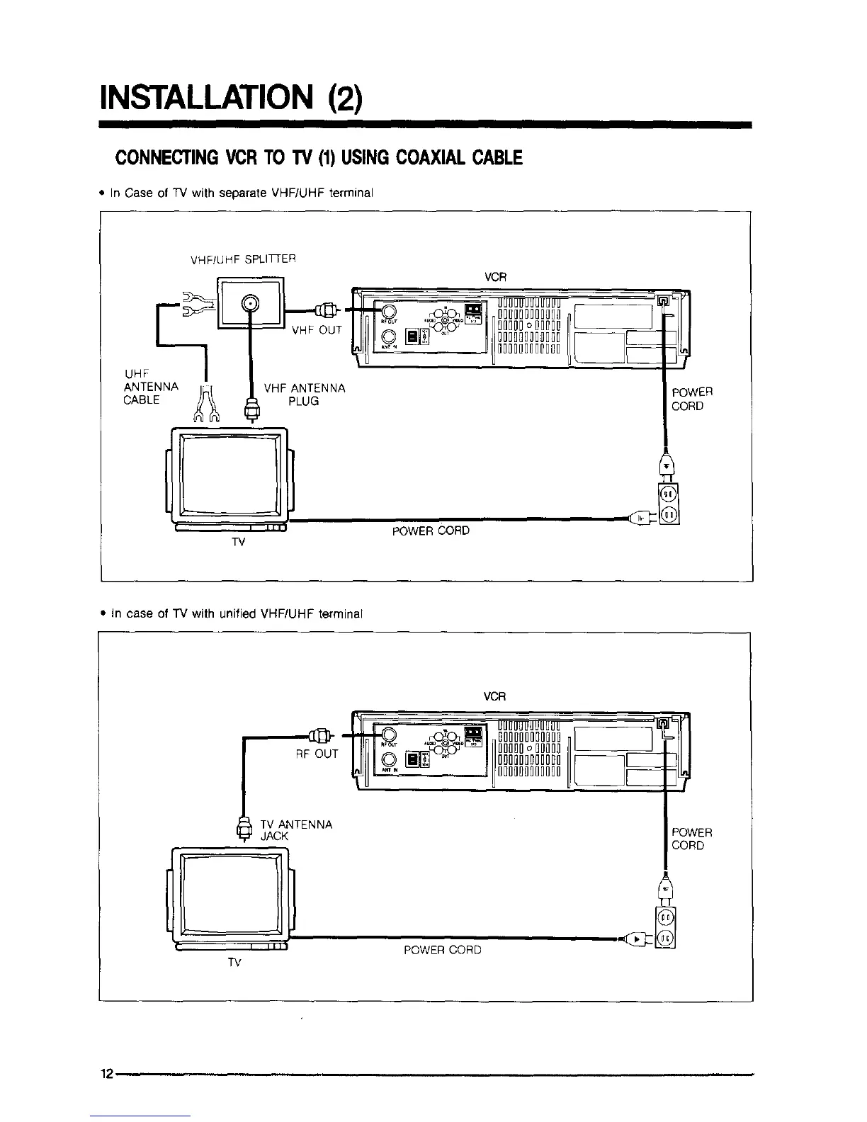 CONNECTINGVCRTO TV (1) USINGCOAXIALCABLE