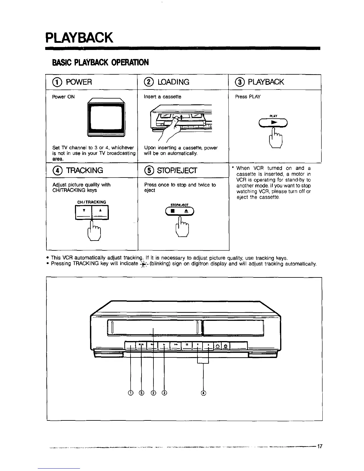 • This VCR automatically adjust tracking. If it is necessary to adjust picture quality, use tracking keys.
