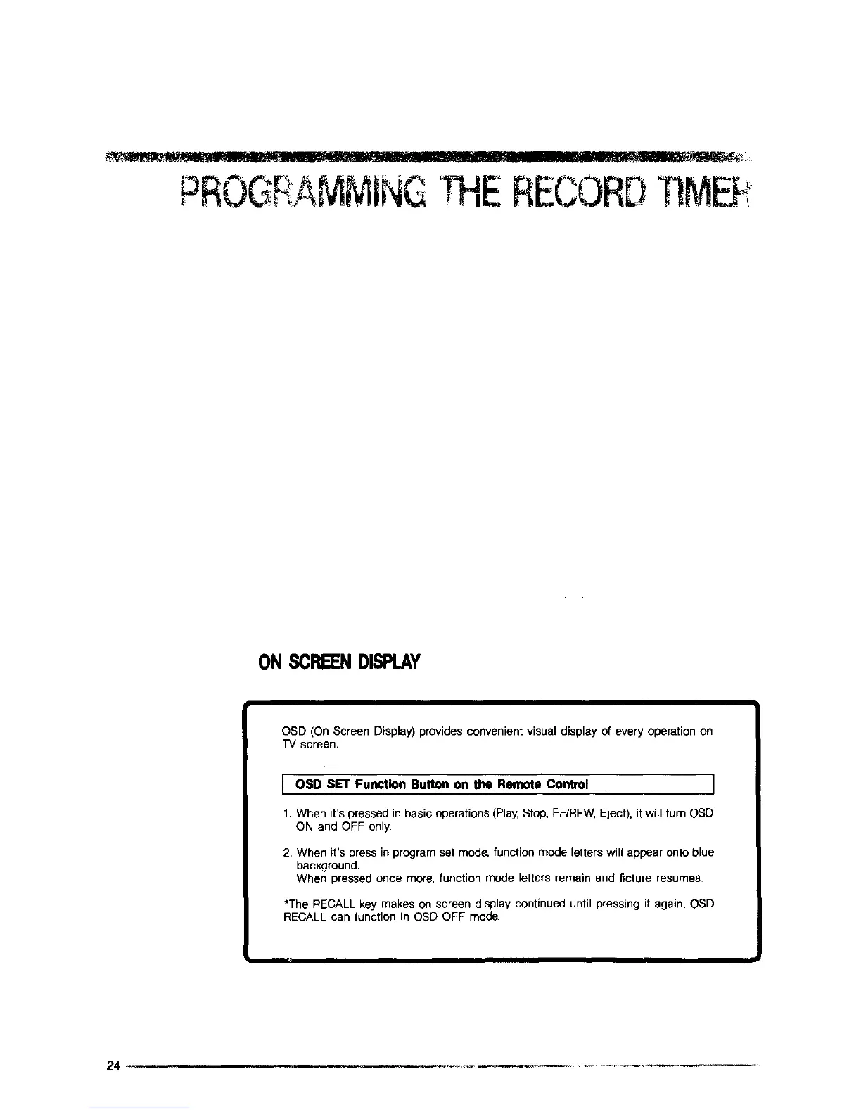 1. When it's pressed in basic oderations (Play, Stop, FF/REW,Eject), it will turn OSD