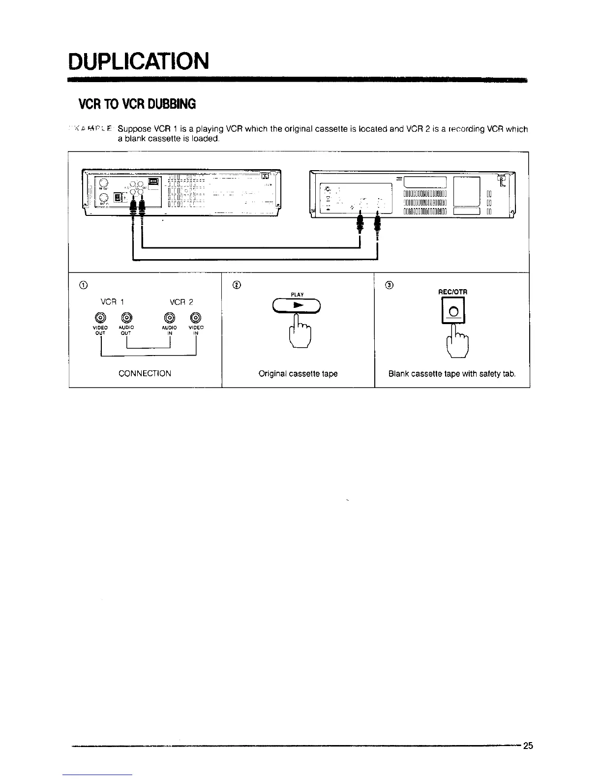 , .__T_,:._ Suppose VCR 1 is a playing VCR which the original cassette is located and VCR 2 is a recording VCRwhich