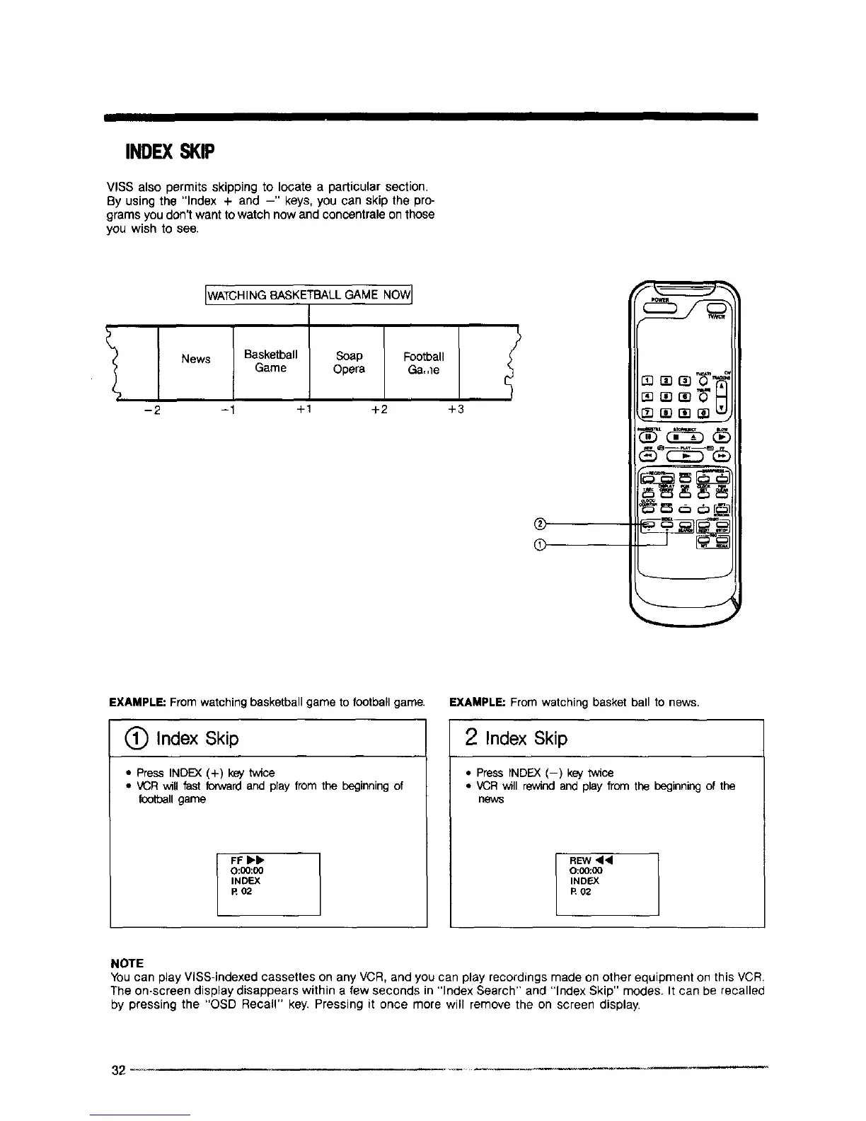 YOUcan play VISS-indexed cassettes on any VCR, and you can play recordings made on other equipment on this VCR,