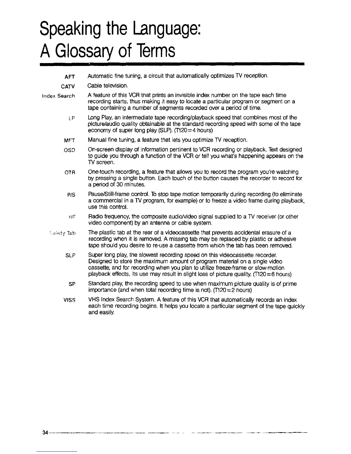 VHS Index Search System. A feature of this VCR that automatically records an index