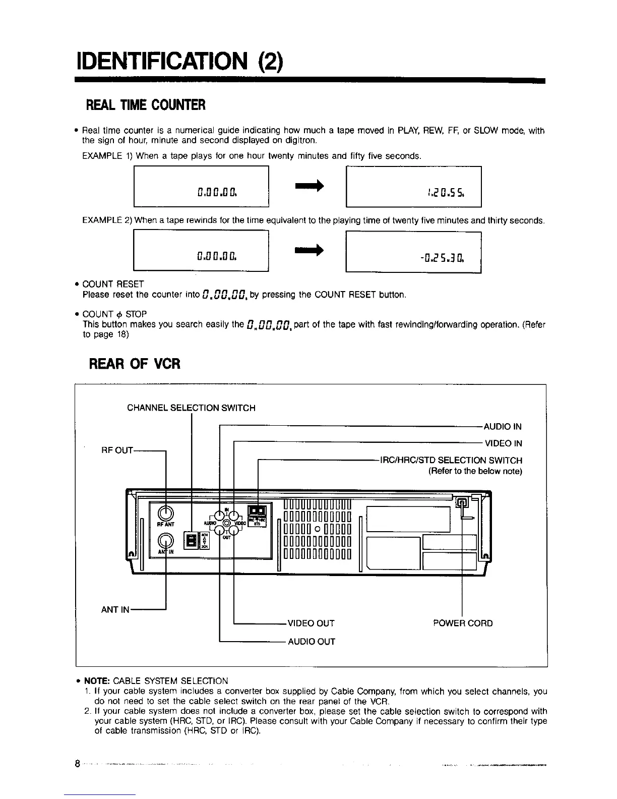 • Real time counter is a numerical guide indicating how much a tape moved in PLAY, REW, FF, or SLOW mode, with