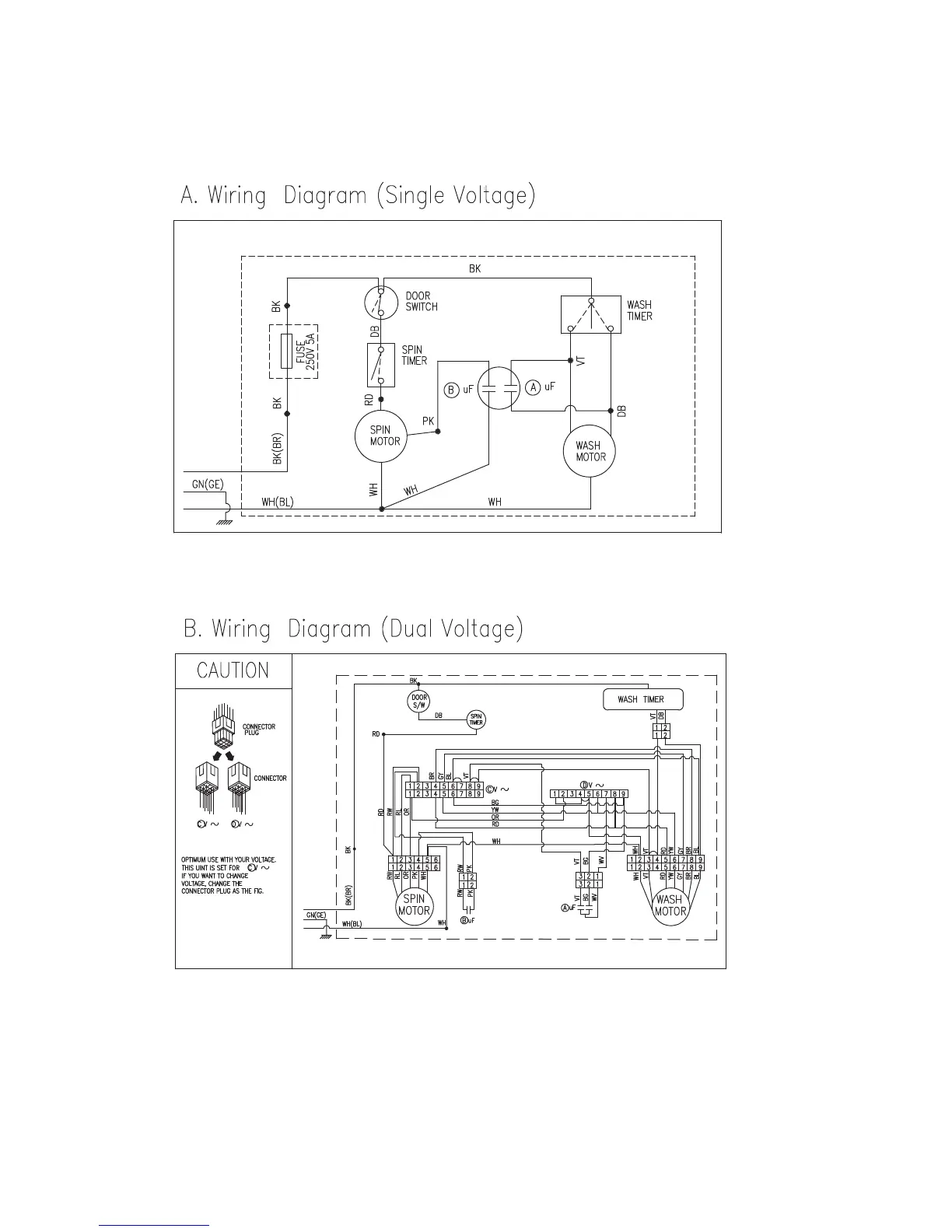Daewoo DW-2500 - Wiring Diagrams; Wiring Diagram (Single Voltage); Wiring Diagram (Dual Voltage)