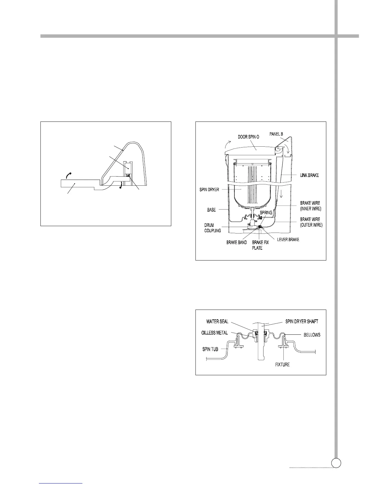 And then the brake band touches the drum coupling assembly and stops the spin dryer as it is pulled by the spring in