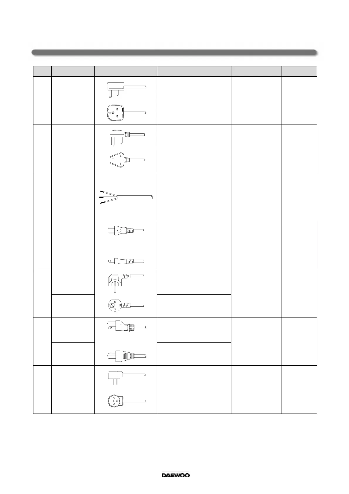 NO. PART CODE TYPE OF PLUG SPEC. COUNTRY REMARK