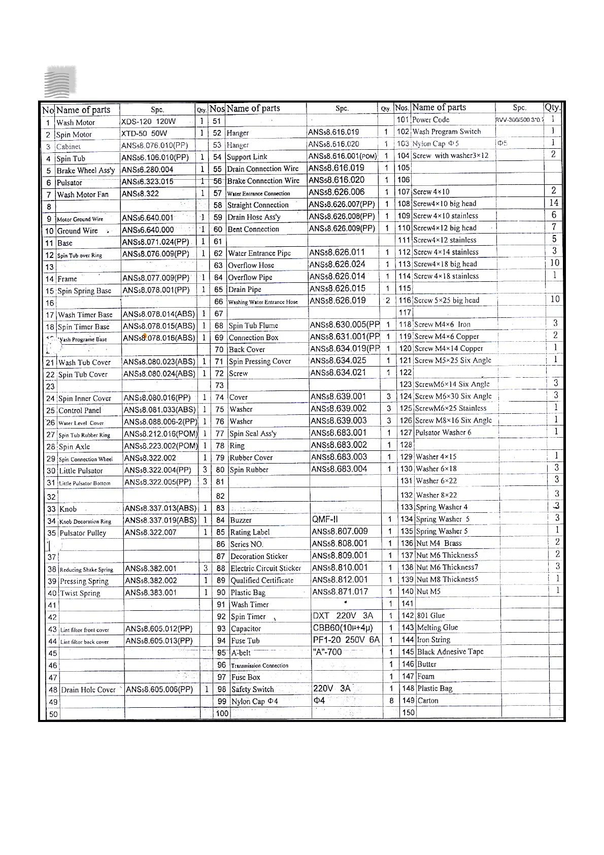 PARTS LIST