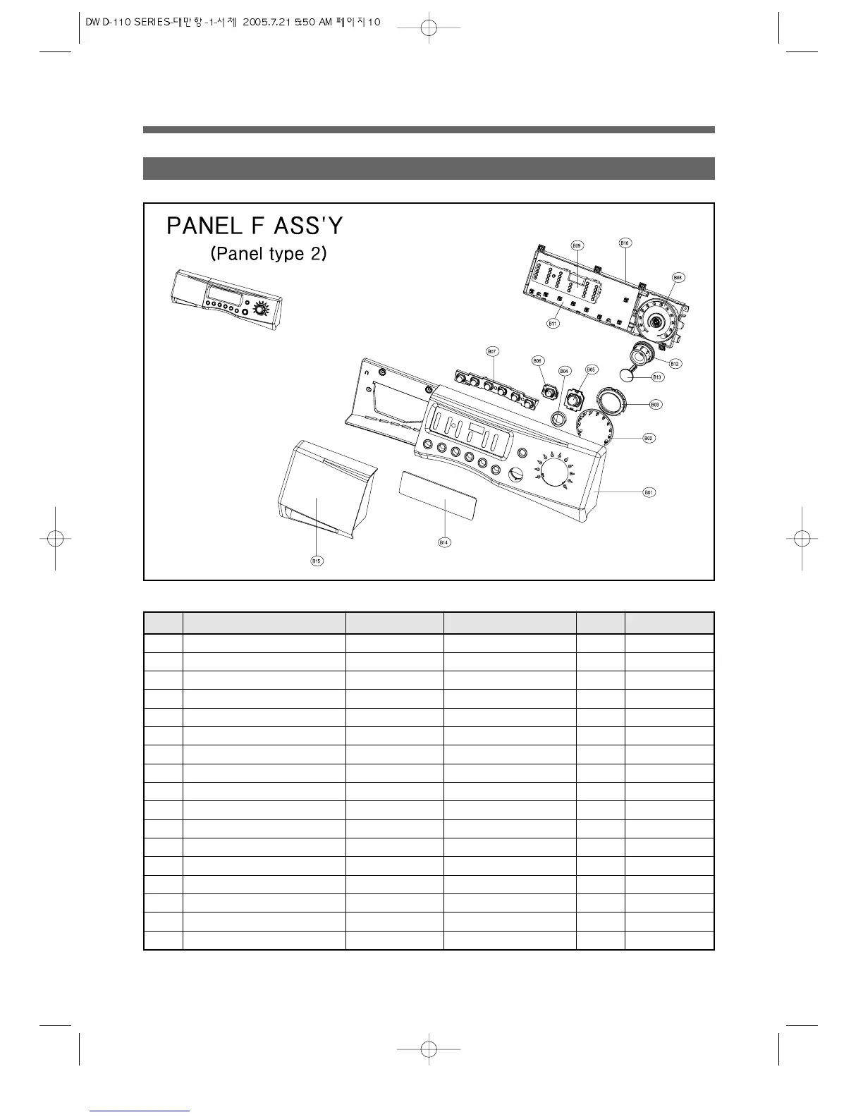 2. THE EXPLODED VIEW OF PANEL F ASSEMBLY(TYPE 2, DWD-1221** / DWD-
