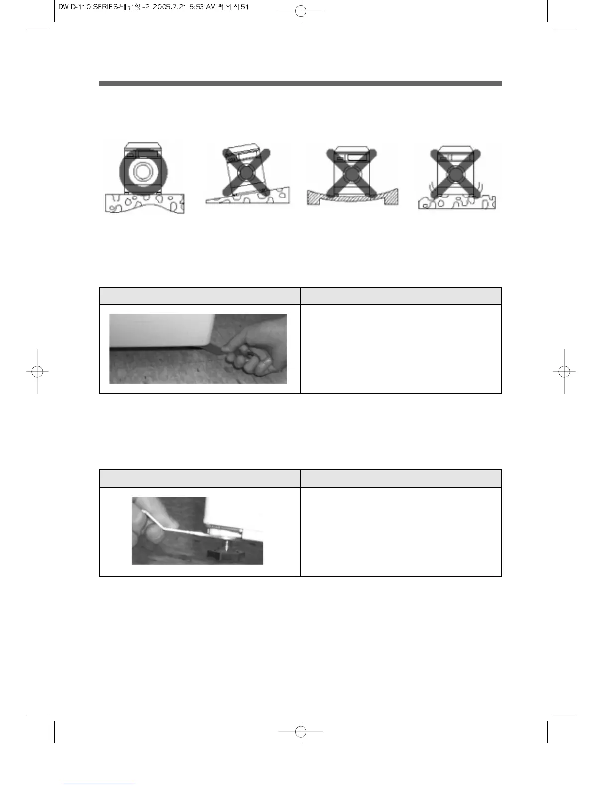 ③Please install the DRUM WASHING MACHINE properly on even and hard floor as below.