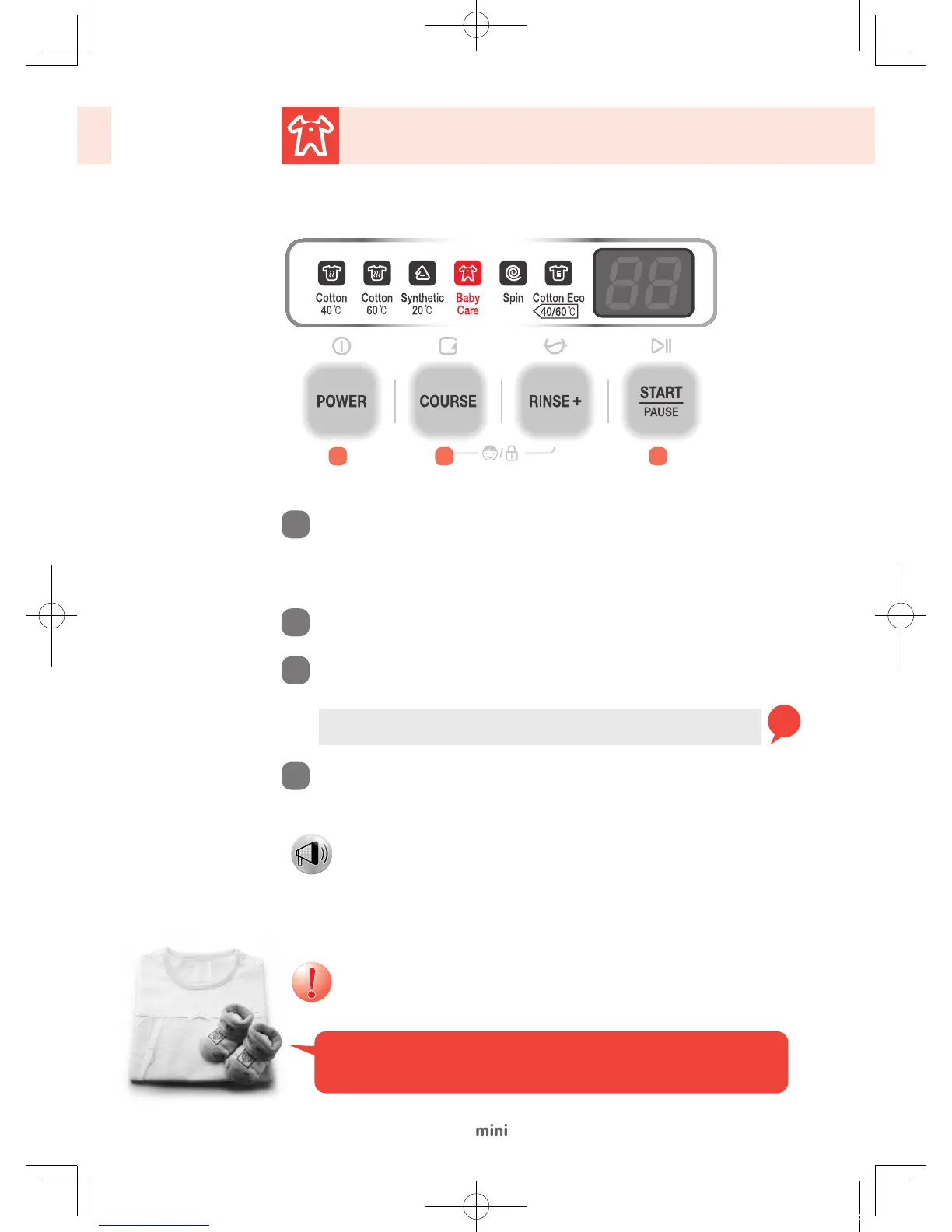 "Select the Baby Care Course to steam wash baby