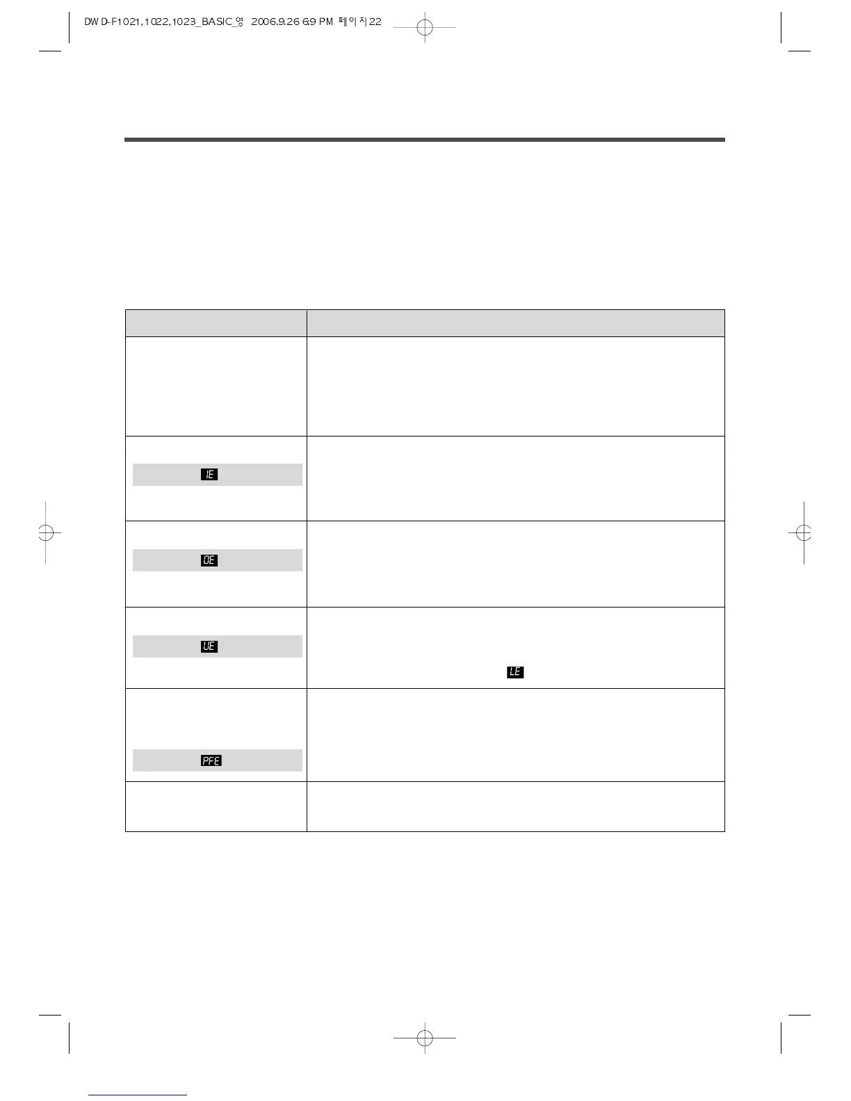 If PFE error mode was displayed on the control part, in order to solve this problem, first turn off the