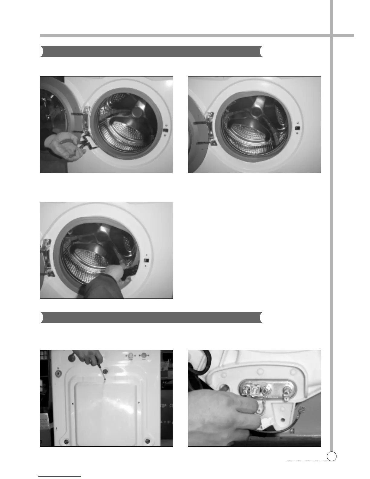 1) Open the door and remove the gaske clamp. 2) Remove the gasket from the front cabinet.