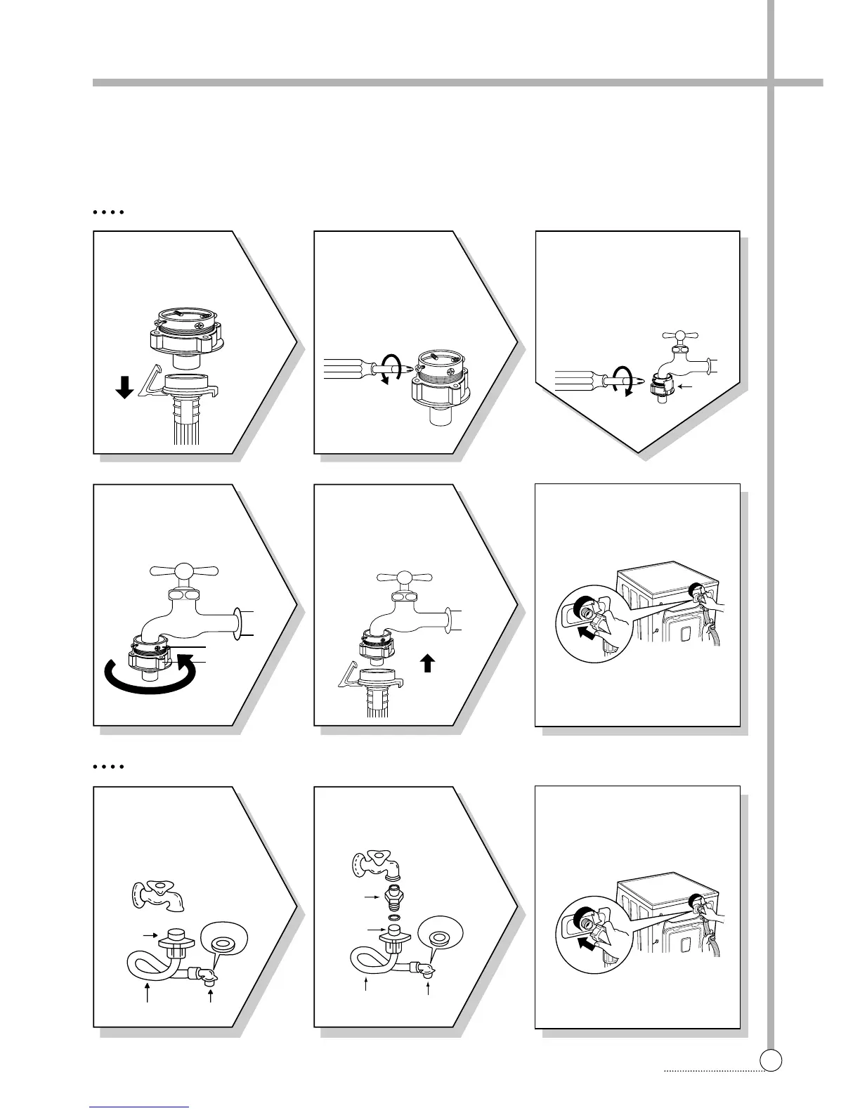 In using only one water tap or in case of only one water inlet valve, connect the inlet hose to the cold water inlet valve.